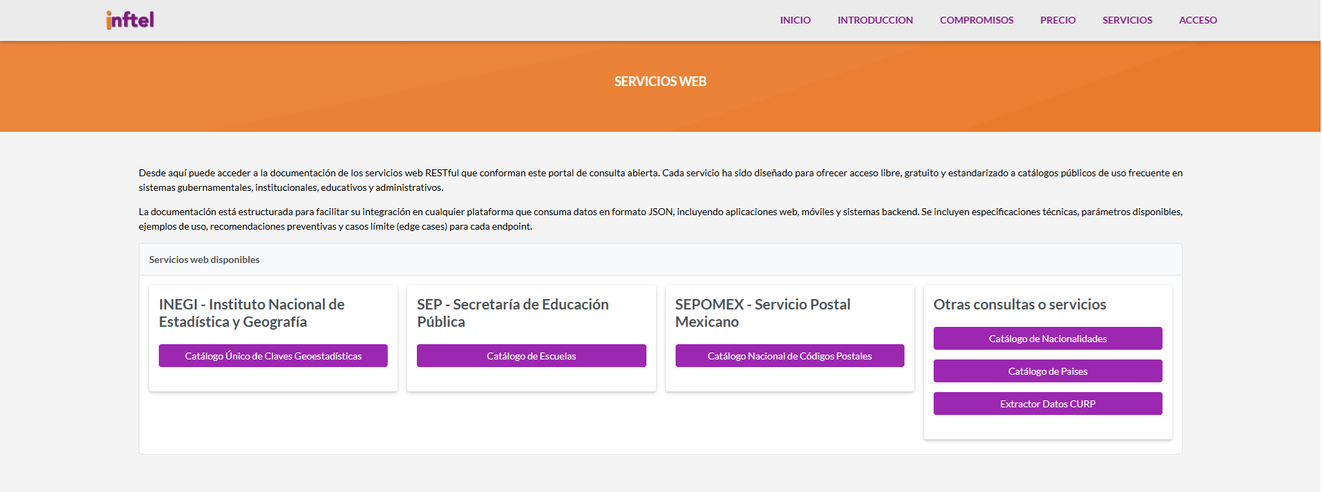 Inftel-API | Servicios web para consulta de datos de uso común en el desarrollo de sistemas.